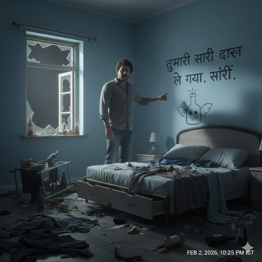 बड़ी खबर: चोर ने इंजीनियर के घर लूटा, लिपस्टिक से दीवार पर लिखा - "दारू रखते हो तो चखना भी रखा करो"